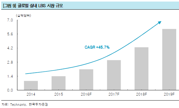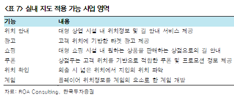실내 지도는 O2O 서비스 시장 확대와 실내 생활 시간 증가로 사용이 빠르게 증가하는 영역이다. 실내 지도 시장을 선점해 양질의 이용자 데이터 확보하면 다양한 분야로의 사업영역 확대가 가능하다.