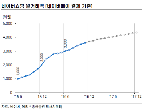 2017년 네이버쇼핑의 광고매출액은 6천억원으로 예상되고 OPM 10%로 수익기여가 본격화될 것이라는 관측도 나오고 있다.