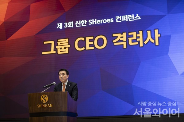 18일 금융권에 따르면 신한금융은 지난 17일 오후 서울 중구 세종대로 신한금융 본사에서 ‘제3회 신한 쉬어로즈 컨퍼런스’를 개최했다. 이날 컨퍼런스에는 조용병 회장을 비롯해 그룹 내부 여성 부서장 이상 임직원과 중관 관리자급 여성리더 등 약 300명이 함께했다. 다만 신종 코로나바이러스 감염증(코로나19) 확산을 방지하기 위해 현장에는 최소한의 인원만 참석했다.