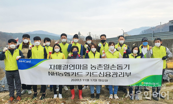 NH농협카드가 영농철을 맞아 코로나19으로 인력이 부족한 자매결연 마을을 찾아 일손을 보탰다.