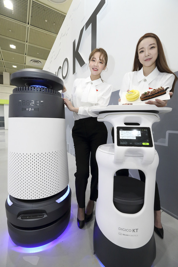 KT는 디지털전환(DX) 융합 분야 중 하나로 로봇 관련 사업을 밀어붙이고 있다. 지난 2020년에는 KT엔터프라이즈의 인공지능(AI)·DX융합사업 부문에 AI로봇사업단을 신설했고 상업용 로봇을 선보이기 시작했다. 지금까지 내놓은 제품들은 AI 방역로봇, AI 서비스 로봇, AI 호텔 로봇, AI 뉴바리스타 로봇, AI 케어로봇 등이다. 기업 대상 서비스 지원 제품이 대부분이며 올해 하반기에는 실외 배달 로봇도 선보일 계획이다.