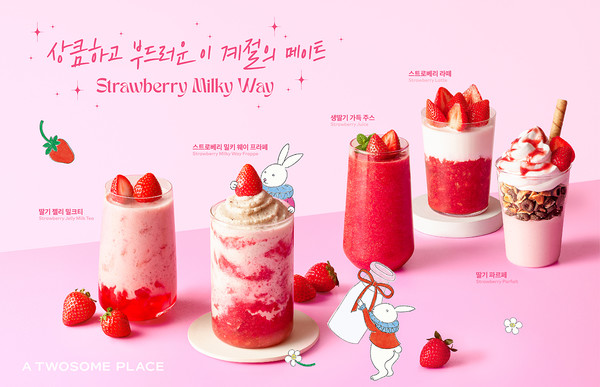 투썸플레이스는 음료와 케이크, 베이커리 등 딸기를 활용한 신제품을 선보였다. 음료는 ▲딸기, 우유, 초콜릿을 활용한 스트로베리 밀키웨이 프라페 ▲과일 티 베이스에 상큼한 딸기를 추가한 딸기 젤리 밀크티 ▲딸기와 우유로 만든 스트로베리 라떼 ▲생딸기 가득 주스 등이다.