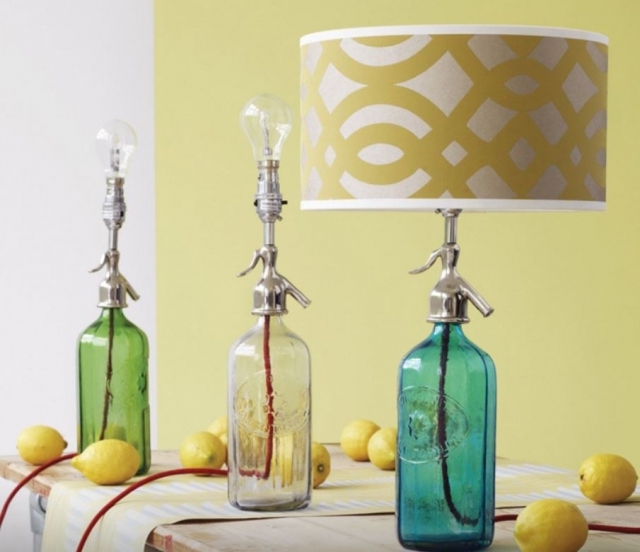또한 디캔터(포도주 등을 일반 병에서 따라 내어 상에 낼 때 쓰는 유리병)와 앤티크 느낌 위스키 병들도 약간의 수정작업을 통해서 아름다운 화분과 전등헤드로 만들어질 수 있다.