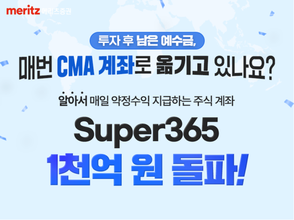 메리츠증권 디지털플랫폼본부 담당자는 “’Super365 계좌’는 하나의 계좌에 모든 혜택들을 집약시키고 고객 계좌의 예수금에 대한 운용 이자 수익 대부분을 고객에게 환원하고 있다"며 “앞으로도 고객의 입장에서 증권사에 바라는 상품과 서비스를 지속적으로 기획하고 제공하기 위해 노력하겠다”고 말했다.