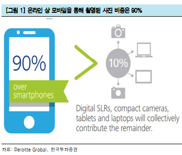 온라인 사진 시장의 고성장은 △스마트폰 보급 확대에 따른 업로드 편의성 강화, △사진 관련 앱 출시 증가, △스마트폰 카메라성능 개선에 기인한다.