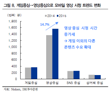 콘텐츠 확장과 인식 개선 작업이 동시에 진행되며 아프리카TV는 10-20대 중심에서 전 연령층으로 시청자 범위가 확대될 것으로 기대된다. 트래픽의 상승은 곧 신규 콘텐츠 수요 증가라는 선순환 구조의 발판을 마련할 것이며, 향후 시행될 광고 상품 도입 등 신규 비즈니스 성공의 단초가 될 전망이다.