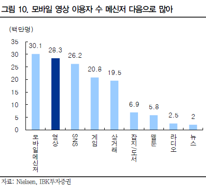 시장조사기관 Nielsen에 따르면 국내 모바일 동영상 이용자 규모는 2,800만명 수준으로 메신저 다음으로 많다. 높은 수준의 트래픽으로 광고 플랫폼으로서의 가치가 부각되고 있으며 광고주들의 수요가 점진적으로 확산되고 있다.