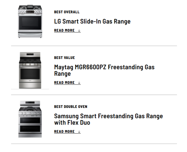한편 삼성전자와 LG전자의 가스레인지는 미국에서 높은 평가를 받고 있다. 유력 가전제품 웹사이트인 ‘굿 하우스키핑(Good Housekeeping)’은 2025년 최고 가스레인지를 LG 스마트 슬라이드-인 가스레인지로 선정했고, 최고 가스레인지-더블오븐 제품으로 ‘삼성 스마트 프리스탠딩 가스 레인지 위드 플렉스 듀오’를 꼽았다.