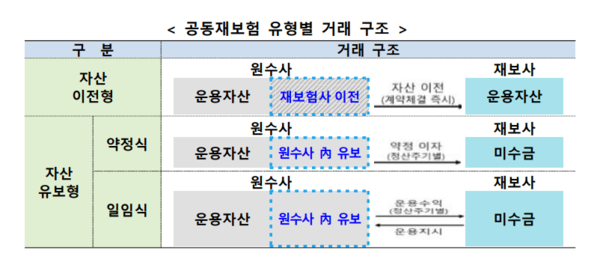 이번 제도는 기존 공동재보험의 두 가지 거래 구조인 ▲자산이전형 ▲약정식 자산유보형의 장점을 결합한 형태다.