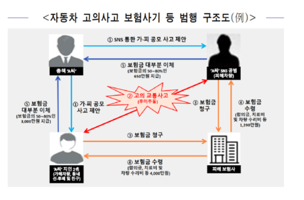 사회관계망서비스(SNS)를 통한 가담자 모집과 고의 교통사고와 허위 청구를 결합한 수법이 이어지면서 보험사기 양상이 개인 단위를 넘어 조직화되고 있는 흐름이다.