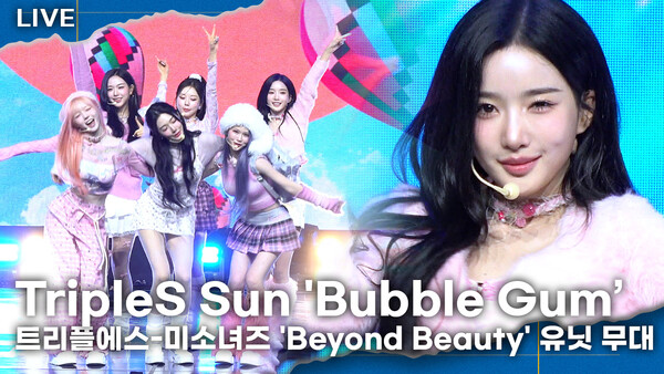 [서울와이어=종서현 기자] 트리플에스- 미소녀즈 Sun(정혜린-김채연-김유연-신위-마유-김채원)이 24일 오후 서울 용산구 블루스퀘어 SOL트래블홀에서 진행된 'Beyond Beauty' 쇼케이스에서 유닛 타이틀곡 'Bubble Gum’무대를 선보이고 있다.