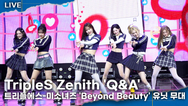 [서울와이어=종서현 기자] 트리플에스-미소녀즈 Zenith(이지우-김수민-공유빈-곽연지-주빈-정하연)가 24일 오후 서울 용산구 블루스퀘어 SOL트래블홀에서 진행된 'Beyond Beauty' 쇼케이스에서 유닛 타이틀곡 'Q&A' 무대를 선보이고 있다.