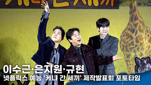 [서울와이어=종서현 기자] 넷플릭스 예능 ‘케냐 간 세끼’ 제작발표회가 25일 오전 서울 용선구 CGV용산 아이파크몰에서 진행됐다. 이날 출근자 이수근, 은지원, 규현, 나영석 PD, 김예슬 PD가 참석해 포토타임을 갖고 있다.